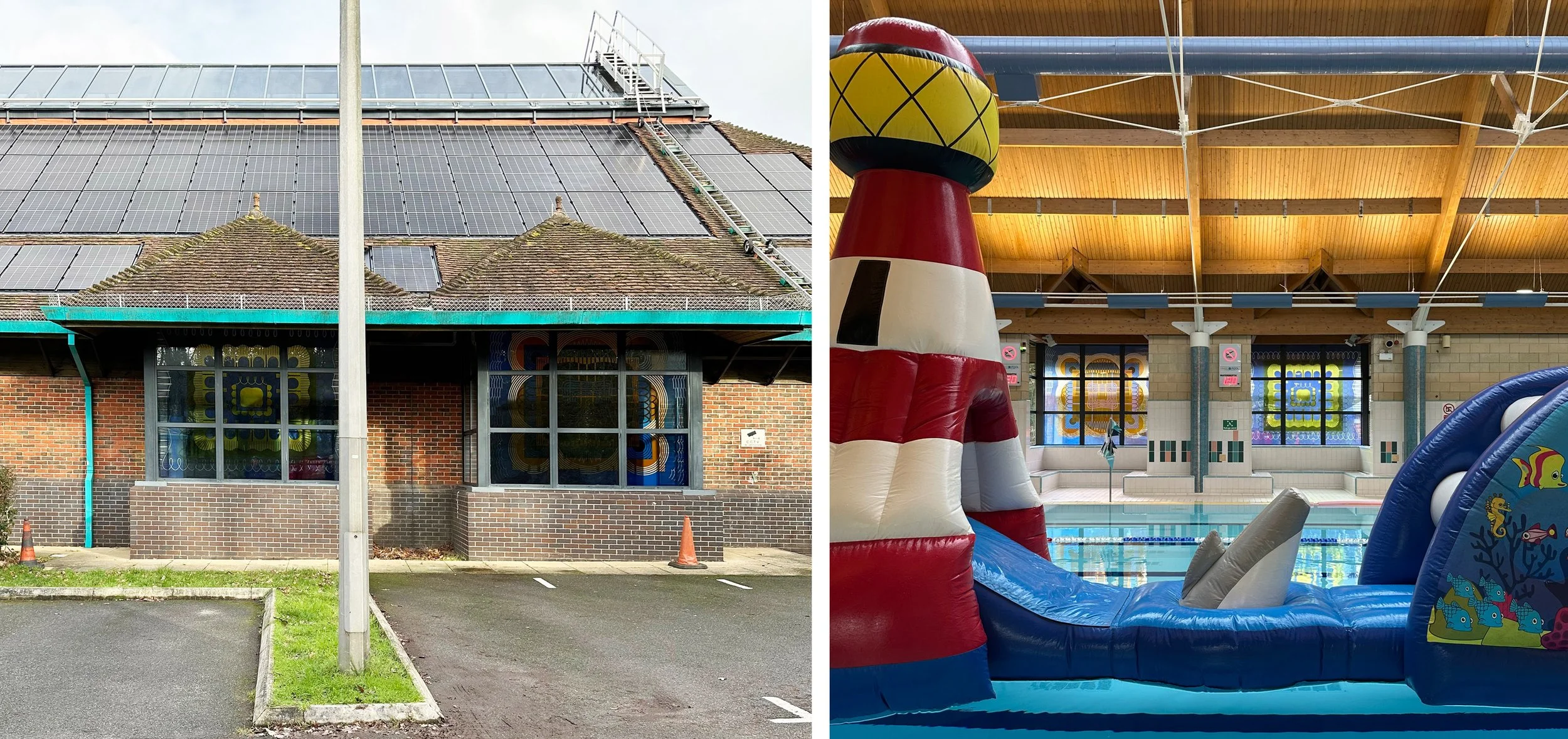 Tadley Health and Fitmess Centre, Hampshire: Pool windows from the outside and the inside.