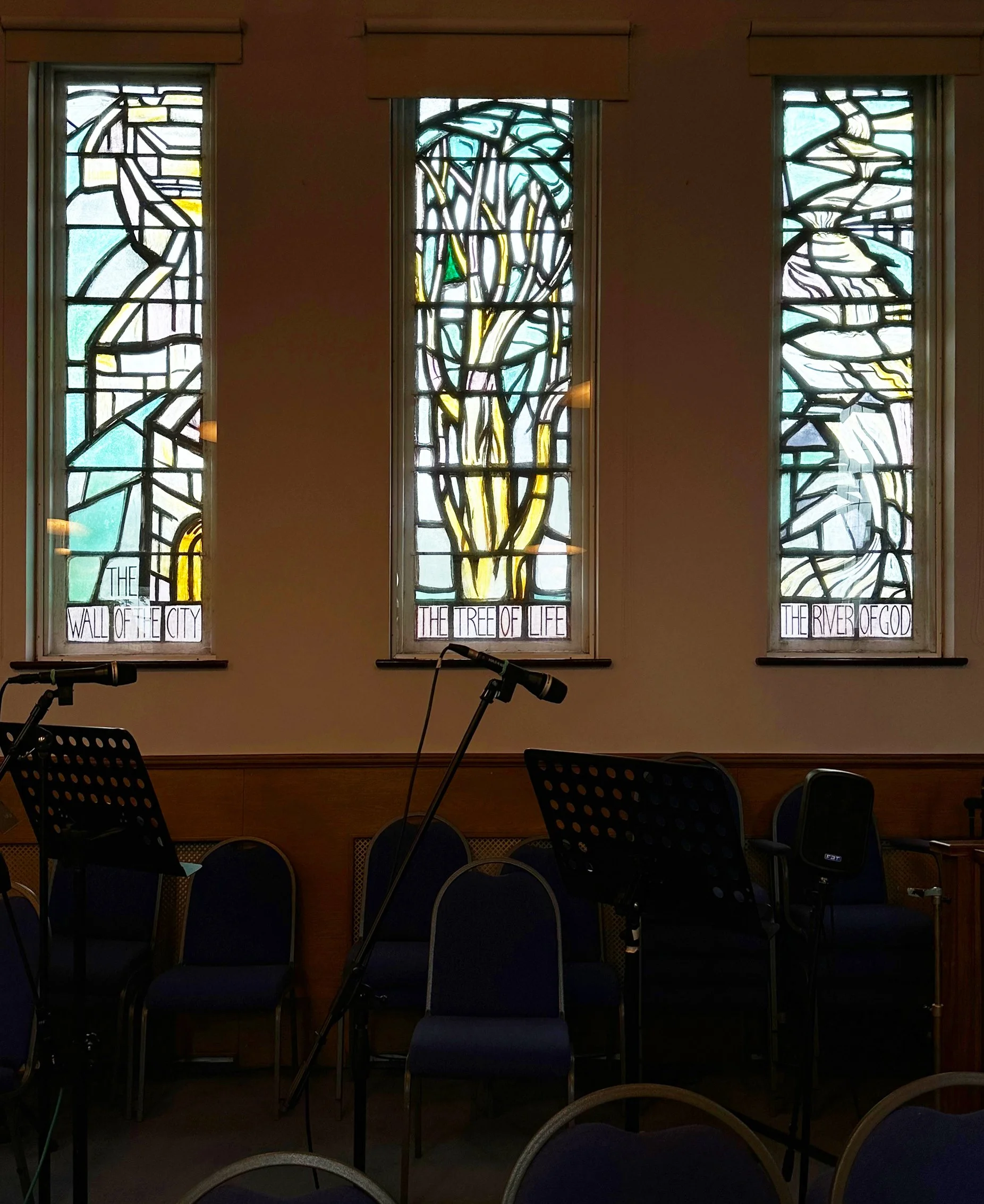 Offington Park Methodist Church. Windows by Rosemary Rutherford in the North Nave, 1959.