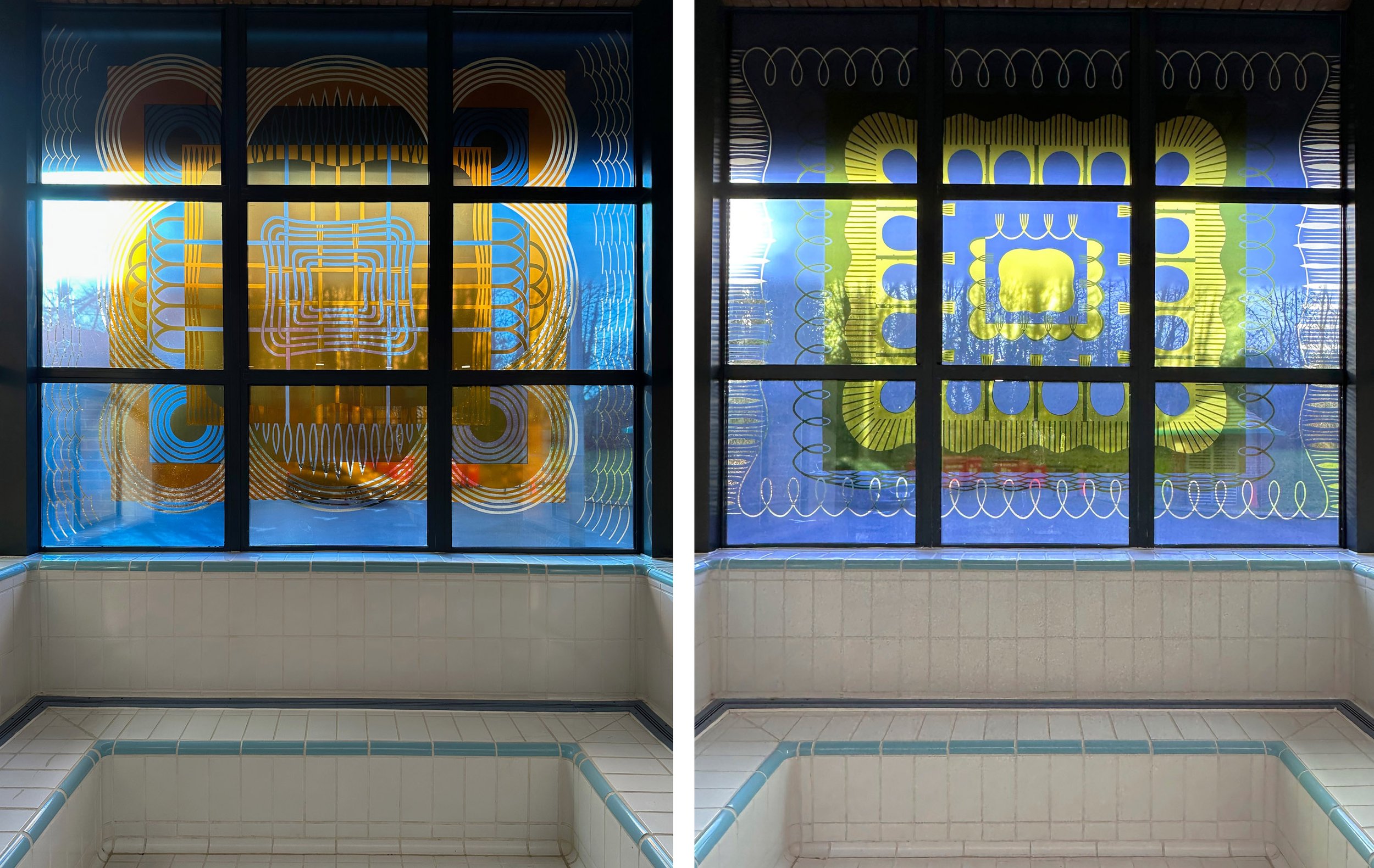 Two windows at Tadley pool 1998. Each 2.6 × 2.9 metres.